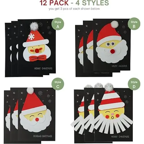 4E's Novelty 12 Pack 2024 Christmas Card Making Craft Kit for Kids & Adults - Individually Wrapped Holiday DIY Handmade Greeting Cards with Envelopes