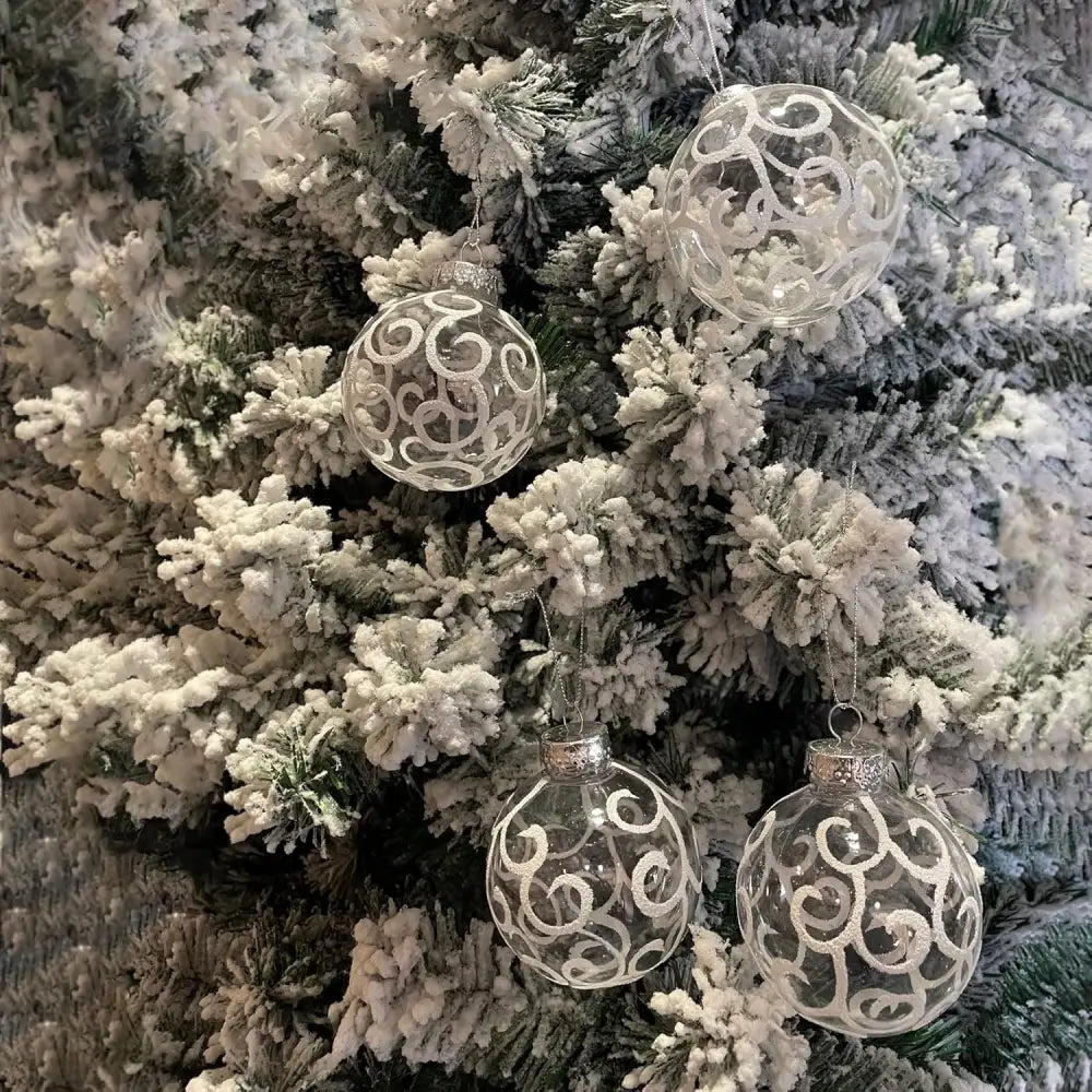 Looking to add some sparkle to your holiday decor without the stress of broken glass ornaments? Say hello to the ultimate christmas ornaments set that’s not just beautiful, but practically unbreakable! Our shatterproof white ornaments bring the elegance of glass with the durability of plastic, letting you deck the halls without a care. These white christmas ball ornaments are perfect for homes with kids, pets, or anyone prone to the occasional decorating mishap. Each christmas ornaments set comes with 12 sleek, clear christmas ornaments balls adorned with delicate white glitter swirls. Measuring 3.15" (or 80mm), these large white ornaments are the perfect size for any tree, whether it’s towering at 8 feet or a cozy 5-footer. Plus, they’re pre-strung with silver ribbon, so you can skip the hassle and get straight to the fun part: hanging them up!