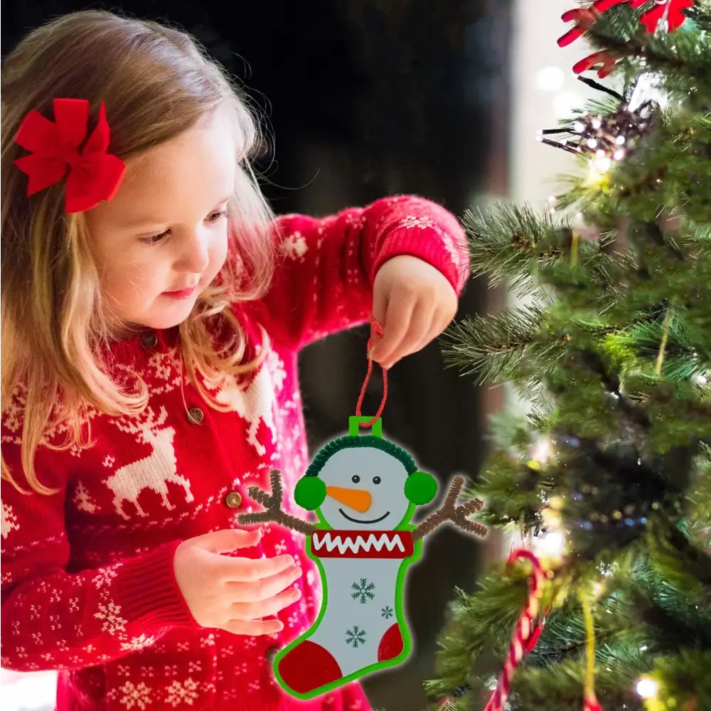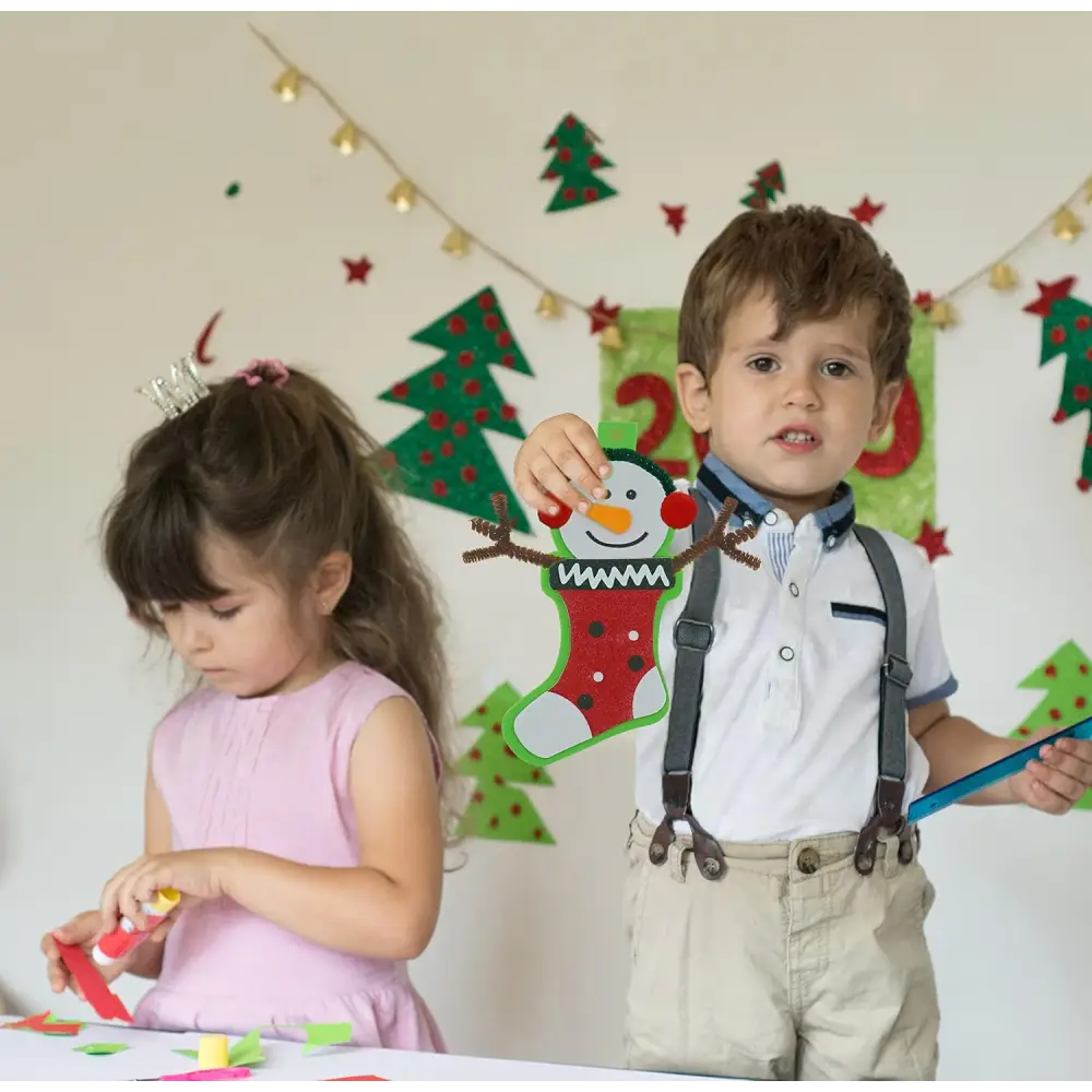 It’s beginning to look a lot like Christmas—and what better way to celebrate than by crafting adorable snowman stockings? Get ready for endless fun with our Christmas stocking kit! This is not just an ordinary kit; it’s a festive experience that’ll keep little ones busy and proud of their DIY masterpieces. Whether hung with Christmas stocking holders or gifted as stocking stuffers, these foam snowman ornaments spread holiday cheer effortlessly. Packed with all you need for a jolly good time, our foam stocking kit is designed to keep things easy, engaging, and full of creativity. The kit contains everything needed to craft 12 festive snowman stockings—no glue required! Each felt snowman is simple and satisfying for kids to decorate. From foam pieces to pom poms and wiggly eyes, it’s time to unleash the holiday magic!