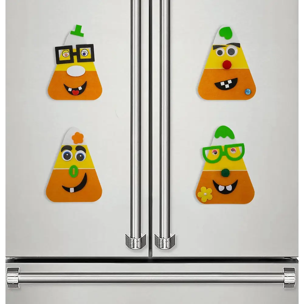 - SPOOKY CREATIVITY: 12-pack candy corn crafts for kids with goofy designs, perfect for halloween party DIY and customizable magnet fun.