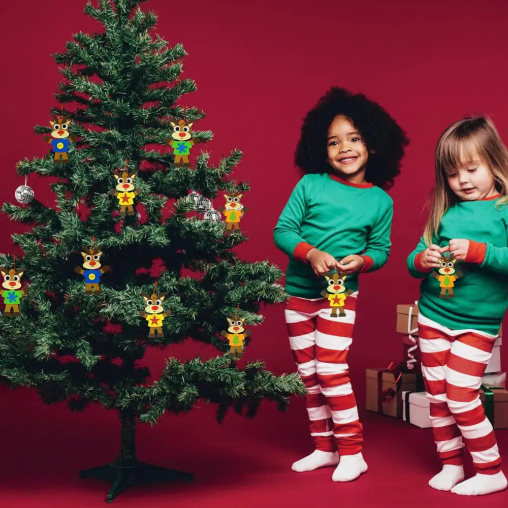 Get ready to sleigh the holiday season with the most adorable reindeer foam craft kit! Perfect for little crafters, this kit is filled with everything you need to make your own jolly reindeer decorations. Whether you’re preparing for a festive family night or stocking up on christmas crafts for kids bulk individually wrapped, this kit is the go-to for fun-filled holiday crafting. With 12 reindeer in 4 unique designs, each with their very own red noses (hello, Rudolph!), your kids will be busy turning foam into festive fun! No glue? No problem! Our ornament making kit for toddlers comes with christmas foam stickers for kids, so your little ones can easily peel and stick to create their masterpieces. These foam christmas ornaments crafts for kids are designed to be simple and mess-free, making them ideal for all ages. Plus, each piece is individually wrapped—perfect for parties, classrooms, or cozy holiday evenings at home.