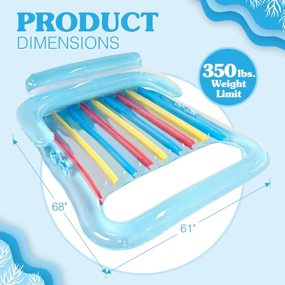 Experience the epitome of relaxation and fun with our Pool Lounger Inflatable Floats for Adults. Designed with comfort, durability, and versatility in mind, this set is good for 2 people perfect for anyone looking to enjoy the best of summer. Whether you're lounging by the pool, floating on the lake, or soaking up the sun at the beach, these heavy-duty pool floats are your go-to companions.