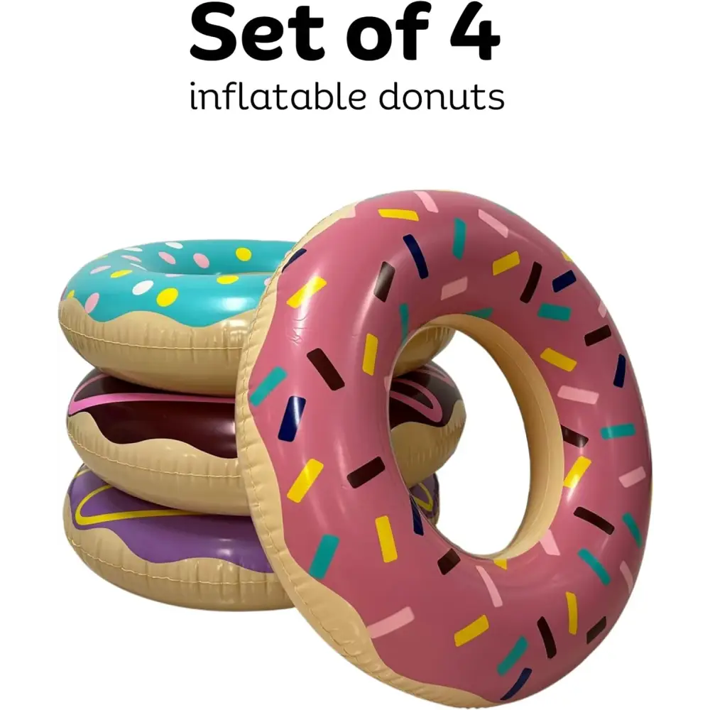 4E's Novelty 4 Pack Mini Inflatable Donuts – 15" Donut Decor for Party Favors