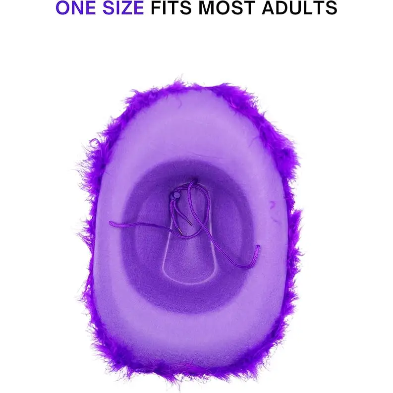 • TURN HEADS IN STYLE: This bold purple cowgirl hat with fluffy feather trim is the ultimate statement piece for concerts, parties, and bachelorette celebrations!