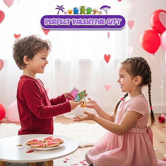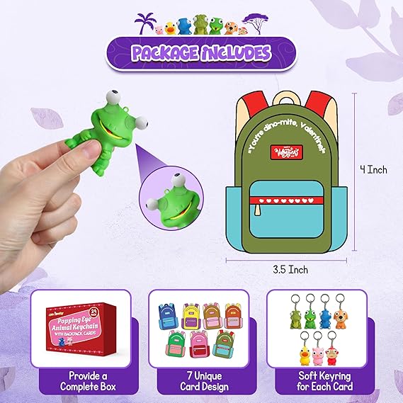 𝐀 𝐒𝐐𝐔𝐄𝐄𝐙𝐘 𝐁𝐔𝐍𝐃𝐋𝐄 𝐎𝐅 𝐄𝐘𝐄-𝐏𝐎𝐏𝐏𝐈𝐍𝐆 𝐅𝐔𝐍: Get ready for giggles galore with 24 squeezable pop eye animal keychains and 24 cute Valentine cards (8.2×11cm)! Squeeze those adorable animals and watch their eyes hilariously bulge out the ultimate popping eyes valentines that turn every hand-out into a laugh riot for kids valentines for class!