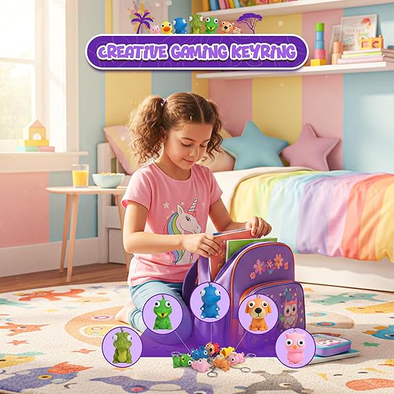 𝐃𝐄𝐋𝐈𝐆𝐇𝐓𝐅𝐔𝐋𝐋𝐘 𝐃𝐔𝐑𝐀𝐁𝐋𝐄 & 𝐒𝐔𝐏𝐄𝐑 𝐂𝐔𝐓𝐄: Soft, squishy pop eyes squeeze toy valentine animals in bright colors that kids go crazy for! High-quality valentines cards with keychain that stay fresh in a convenient bag package the class valentines keychains everyone fights over at school parties!