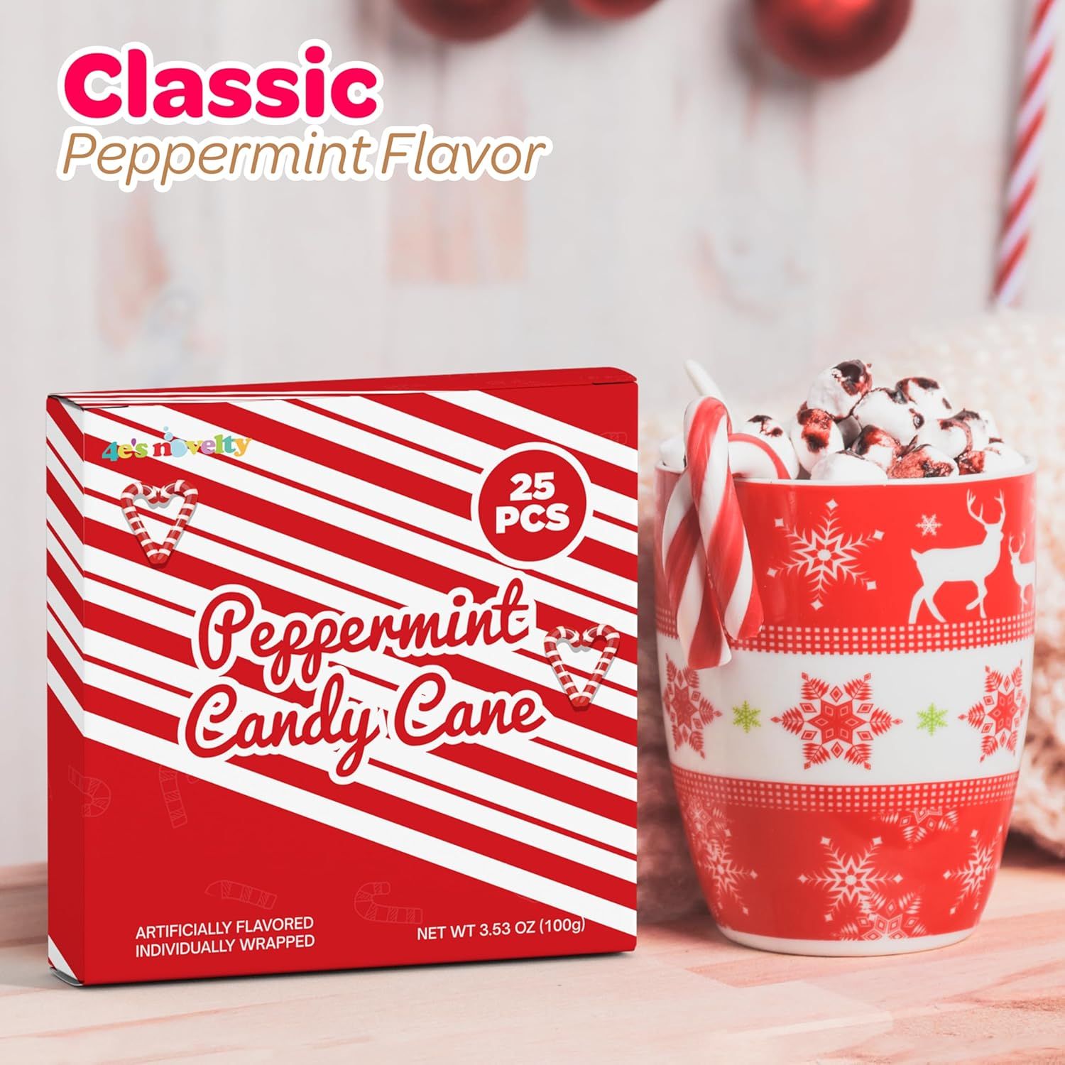 4E's Novelty 25 Pack Christmas Mini Individually Wrapped Candy Canes, Red and White Peppermint Candy Canes, Treats for Holiday Stockings