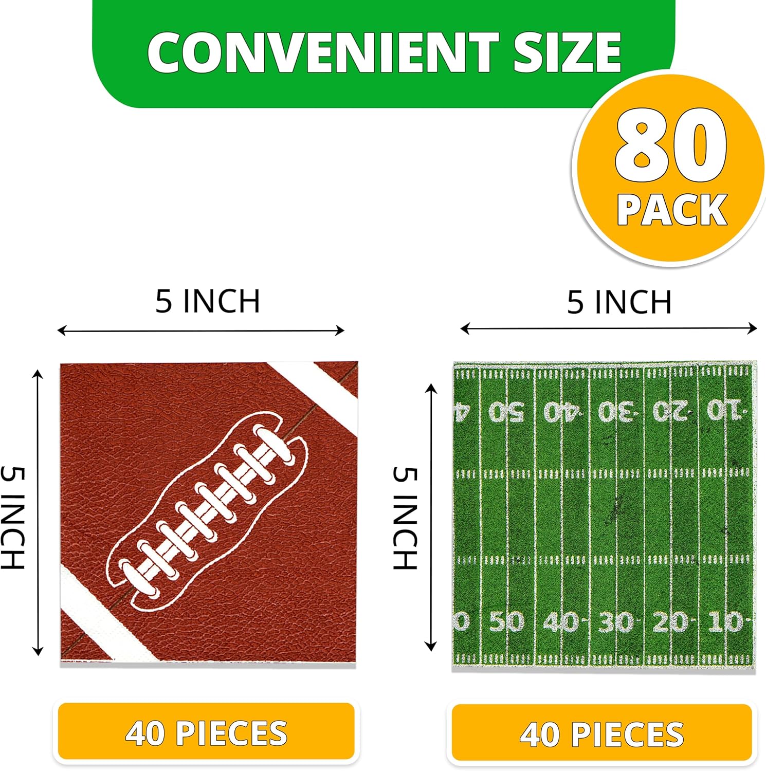 GAME DAY FUN STARTS HERE: 80 football napkins featuring 2 fun designs to elevate any celebration, from birthdays to tailgates.