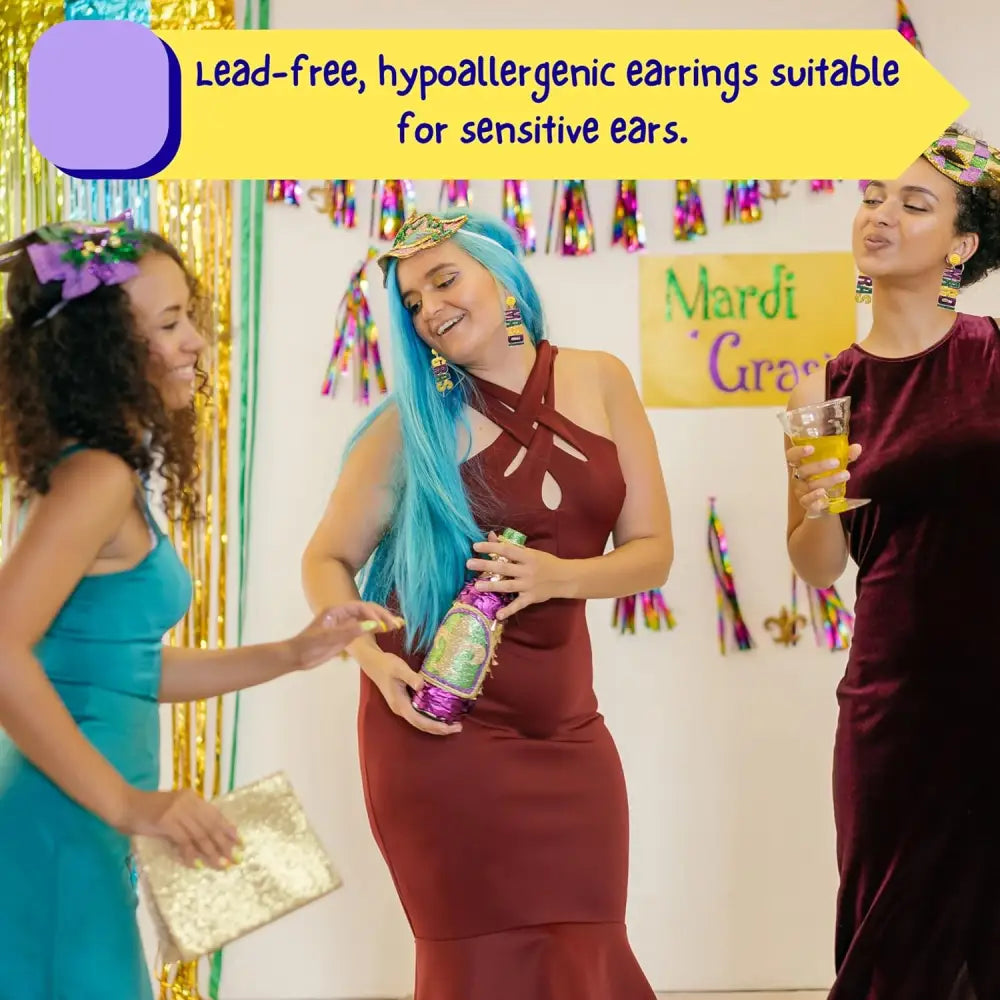 4E's Novelty Beaded Dangle Earrings for Women – Festive Mardi Gras Fashion Jewelry