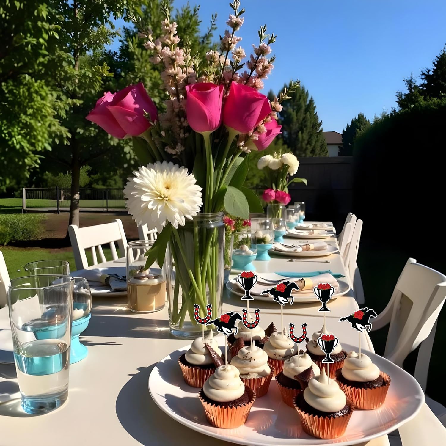Measuring approximately 4.5 inches tall, they are easy to insert and disposable for convenient cleanup after your event. Use them as cupcake toppers, charcuterie accents, drink garnishes, or fun table decorations. Stylish and practical, these derby party supplies add bold flair and make every bite feel like a winning moment.