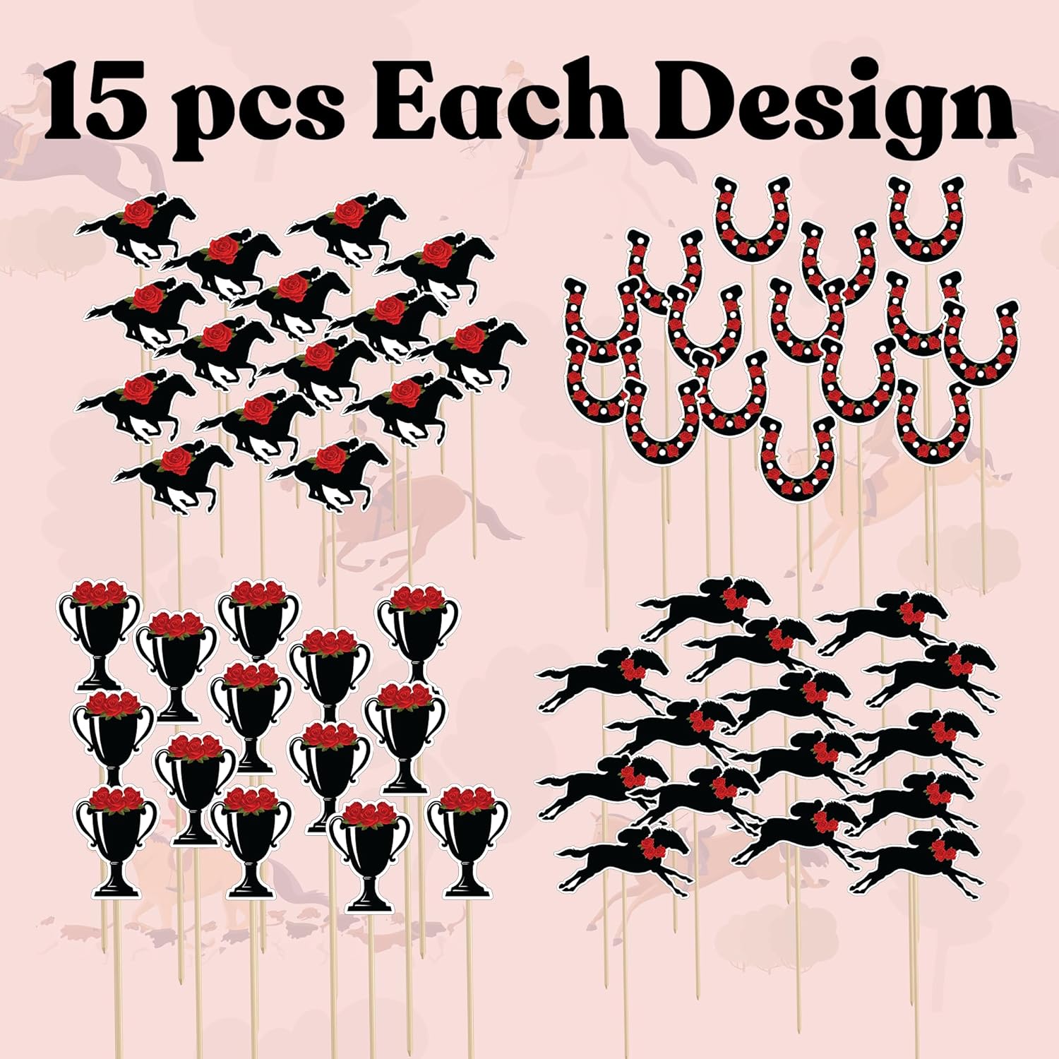 4E's Novelty Horse Racing Derby Toppers Picks 60 Pack – Kentucky Derby Party Toothpicks for Cupcakes, Appetizers & Western Decorations