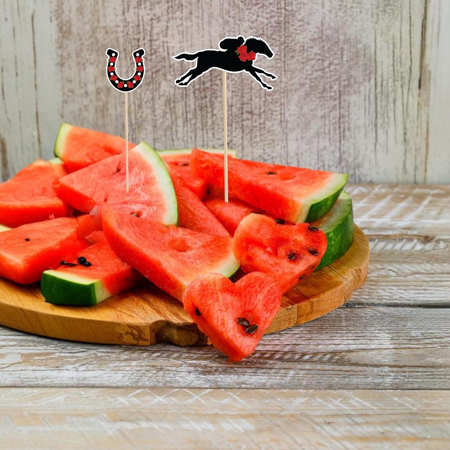 These decorative toothpick toppers are ideal for cupcakes, sandwiches, fruit, cheese, desserts, sliders, and appetizers. Whether you're hosting a Kentucky-themed derby party, western birthday, baby shower, backyard BBQ, or race-day gathering, these picks instantly elevate your food presentation with classic Southern charm.