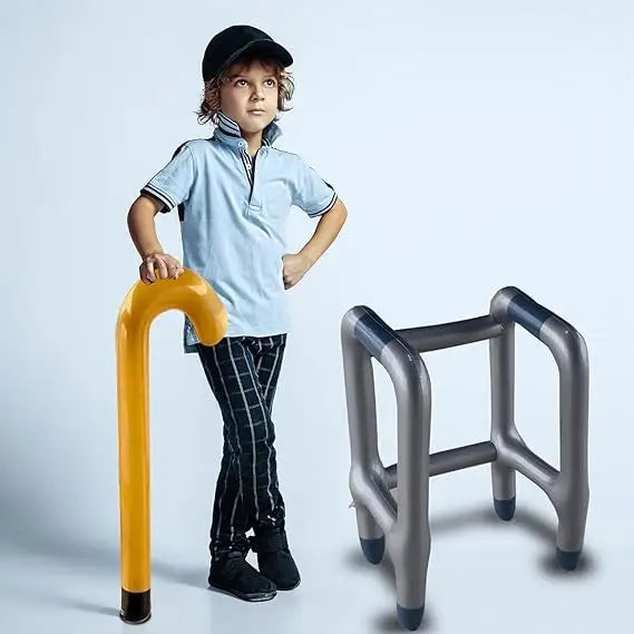 Get ready to transform into a wise old-timer with our Inflatable Walking Cane! Standing at an impressive 37 inches tall, this blow-up cane is the ultimate accessory for anyone looking to rock an old man or old lady costume. Made from thick, high-quality PVC, it’s durable, lightweight, and designed to stay inflated for hours—no need to worry about constant re-inflation! Perfect for kids' 100 Days of School celebrations, Halloween costumes, or even over-the-hill birthday parties, this inflatable cane adds a hilarious touch to any outfit. It’s a one-size-fits-all design, making it great for toddlers, children, teens, and adults. Whether you're dressing up as a grandpa for a school event, throwing a funny retirement party, or adding a playful touch to a Santa Claus outfit, this cane is the perfect finishing touch. Pair it with glasses, a gray wig, a vintage vest, and stick-on bushy eyebrows to complete the classic old person look! Whether for a costume party, cosplay, or school play, this inflatable walking stick is a must-have fun prop that will have everyone laughing.