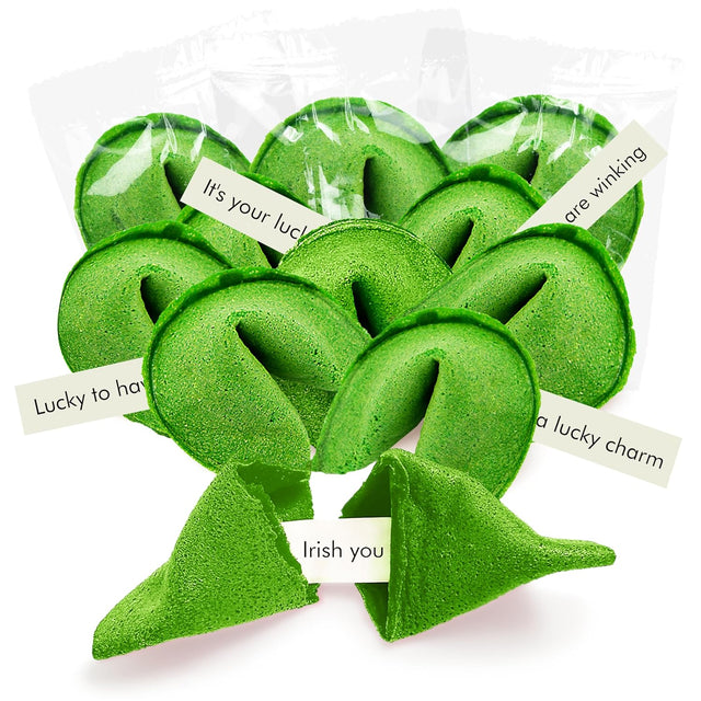 50 ST. PATRICK’S DAY FORTUNE COOKIES: Delight your guests with 50 green fortune cookies filled with Irish-themed sayings. Individually wrapped for freshness, these treats are perfect for parties, giveaways, and festive celebrations.