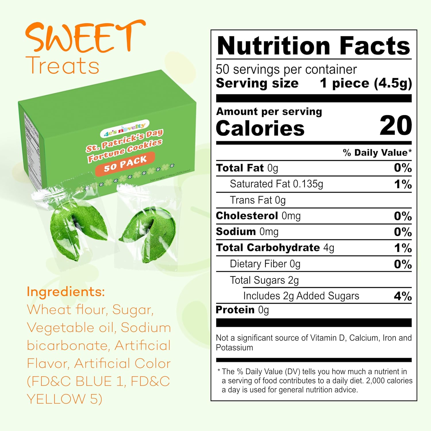 4E's Novelty St. Patrick’s Day Fortune Cookies – 50 Individually Wrapped Party Favors & Treats