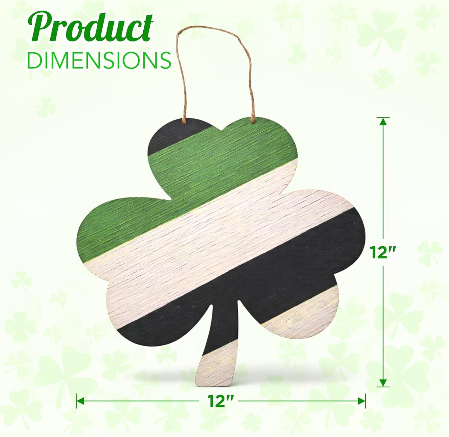𝐆𝐈𝐀𝐍𝐓 𝟏𝟐𝐗𝟏𝟐 𝐈𝐍𝐂𝐇 𝐒𝐇𝐀𝐌𝐑𝐎𝐂𝐊 𝐒𝐓𝐀𝐓𝐄𝐌𝐄𝐍𝐓 𝐏𝐈𝐄𝐂𝐄: This oversized shamrock front door decoration is Ideal forly sized to grab attention without overwhelming your space! Use it as a st patricks day door signs, st patrick door hanger, or st patricks day hanging sign, easy to hang and guaranteed to bring smiles and lucky vibes everywhere.