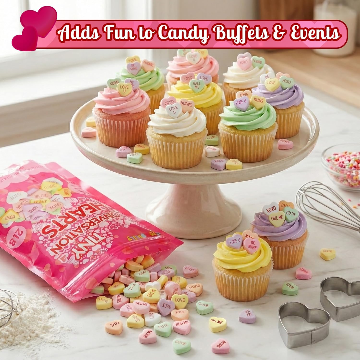 𝐁𝐔𝐋𝐊 𝐓𝐑𝐄𝐀𝐓𝐒 𝐅𝐎𝐑 𝐀𝐋𝐋 𝐘𝐎𝐔𝐑 𝐅𝐔𝐍 𝐓𝐈𝐌𝐄𝐒: Need candy for a bash? Our conversation hearts candy 2lb pack with 1 bag is your go-to hero! Fill bowls, stuff bags, or hand out at school these small conversation hearts candy fit everywhere. Pastel colors pop, and messages like "Hug Me" spark talks and smiles.