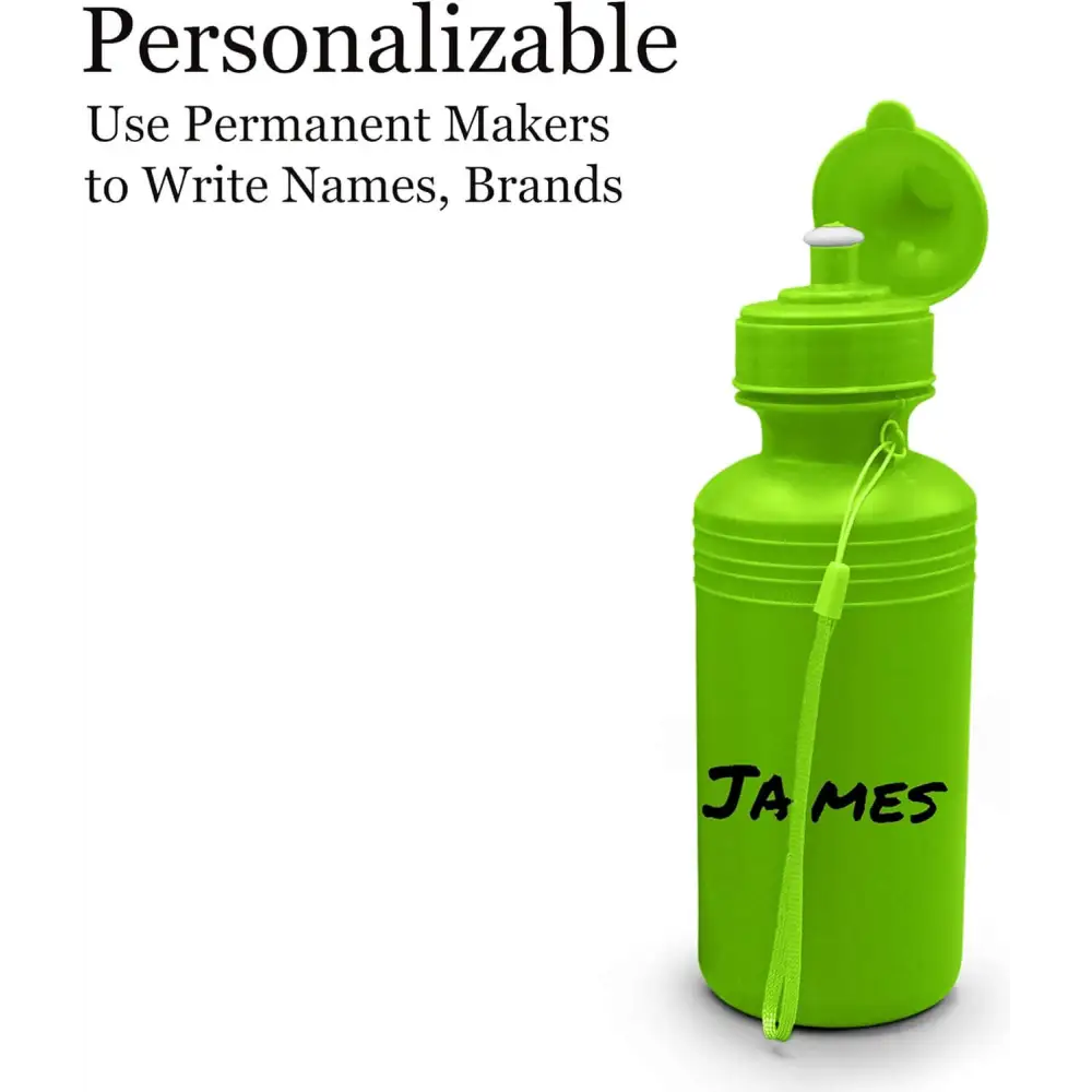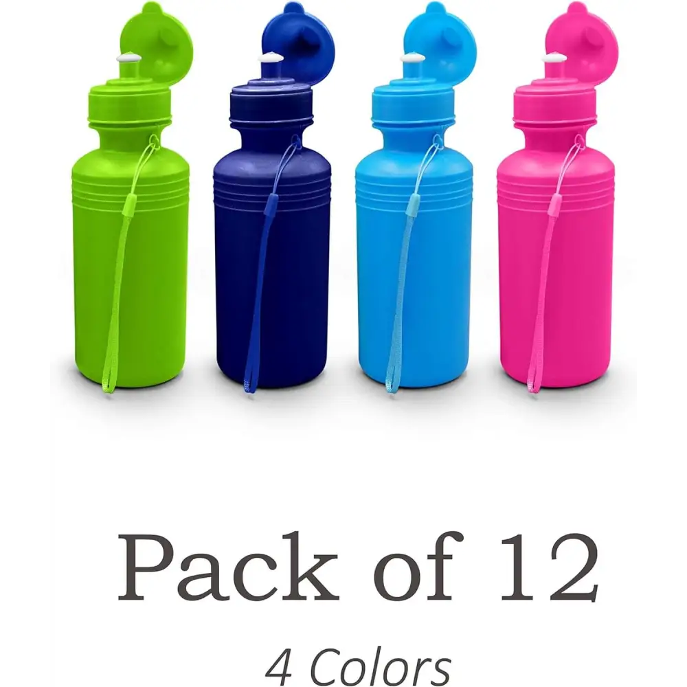 4E's Novelty Bulk Water Sports Bottles for Kids 18 oz - 12 Pack Squeeze Reusable Plastic, Neon Colors, BPA Free, Kids Water Bottles Party Favor Gift Giveaways, End of Year Student Gifts from Teacher