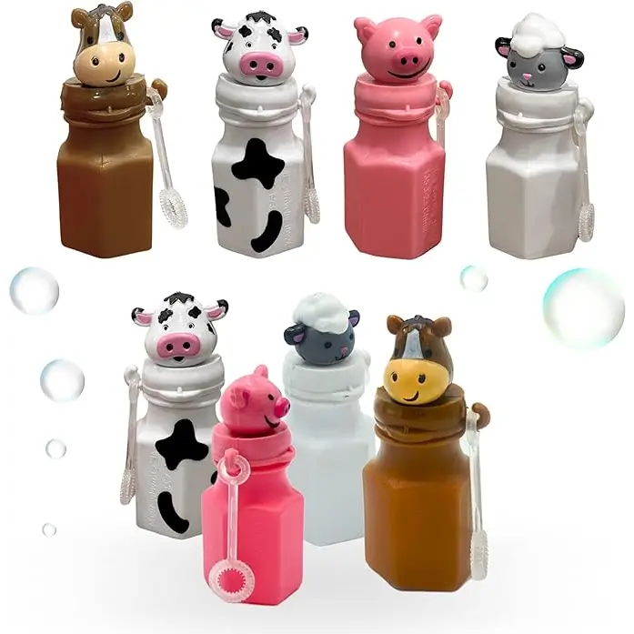 ADORABLE FARM-THEMED FUN – Bring the charm of the barnyard to your event with 24 mini bubble bottles featuring cute pigs, cows, horses, and sheep! Perfect for farm party favors and bubble birthday party decorations.