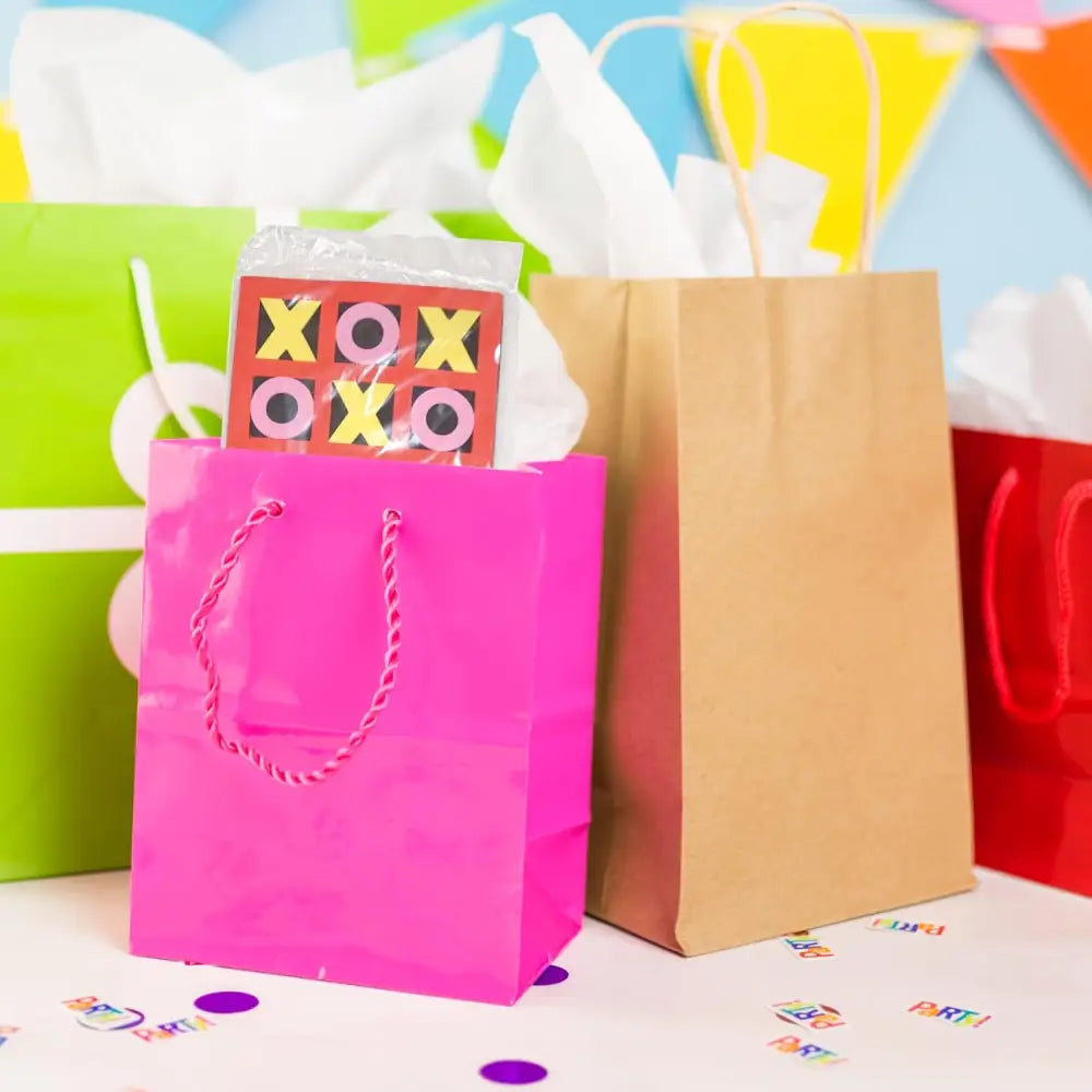 Get ready for epic X’s and O’s battles with our 24 Pack Tic Tac Toe Game set—your go-to for unforgettable kids’ parties and classroom fun! Designed with durable, soft foam, each game board is safe for little hands and built to last. Whether you're prepping birthday goody bags, classroom exchange gifts, or summer camp treats, these mini puzzles are perfect for kids 4-8 and 6-8. Each set comes individually wrapped and includes fun jewel stickers, so kids can customize their game before diving into the fun. From school rewards to holiday giveaways, this screen-free classic helps sharpen critical thinking, logic, and pattern skills. The compact size makes them ideal for travel or home, while the bright colors and snug-fit pieces keep kids entertained for hours. Teachers, parents, and party planners—this bulk value pack is your ticket to smiles, strategy, and timeless fun. Stock up on the ultimate goodie bag toys today!