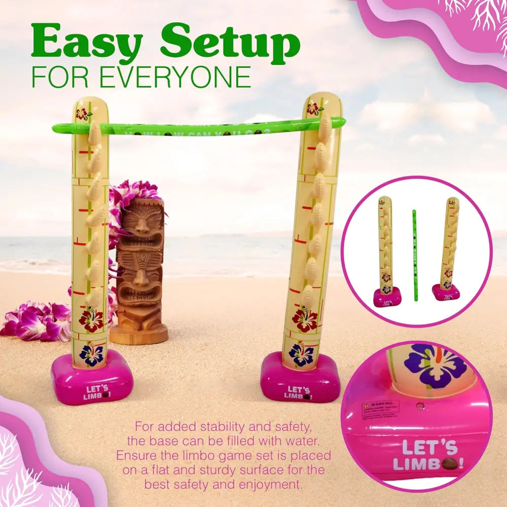 Luau Limbo Game Set - Inflatable Limbo Sticks for Kids & Adults, Pool Party and Picnic Family Fun Twister Game for All